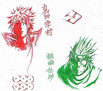 上の絵は授業中+休み時間に描いた真田主従です。
