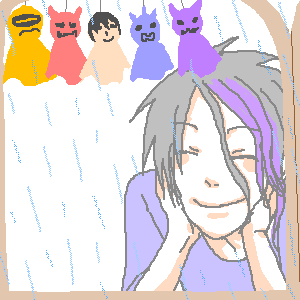 てるてる坊主はリュウちゃんの手作りだったりします^^ 最初は作ってるとこ描いてたけど、こっちにしました^^